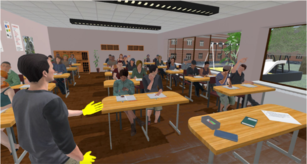 Insbesondere Klassenführungskompetenzen sind für angehende Lehrkräfte zentral. Diese zu erlangen und zu erproben ist mit hohem zeitlichem und organisatorischem Aufwand verbunden. Hinzukommen ethische Bedenken für Studierende und Schüler:innen. Daher haben die Lehrstühle der Universität Potsdam für „Komplexe Multimediale Anwendungsarchitekturen“ und „Erziehungswissenschaftliche Bildungsforschung“ eine virtuelle Trainingsumgebung geschaffen.Im VR-Klassenzimmer übernehmen die Lehramtsstudierenden die Rolle einer Lehrperson und stehen hierbei bis zu 30 virtuellen Schüler:innen (vSuS) gegenüber. Die vSuS werden von einem Studierenden oder einem Dozierenden gesteuert (Coach).