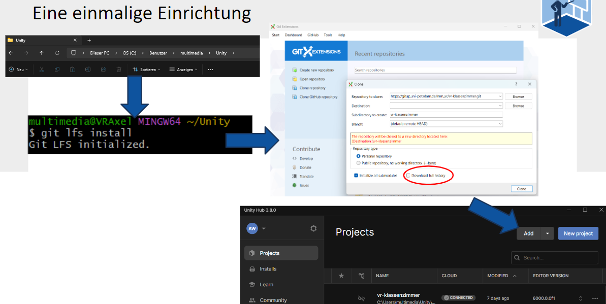 Unity VR-Klassenzimmer Installation mit Git (Alternative Anleitung)