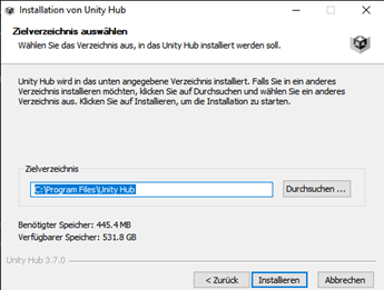 - Klicken Sie mit der linken Maustaste auf die Datei "UnityHubSetup.exe" und bestätigen Sie die Installation, falls erforderlich, mit "Ja".
